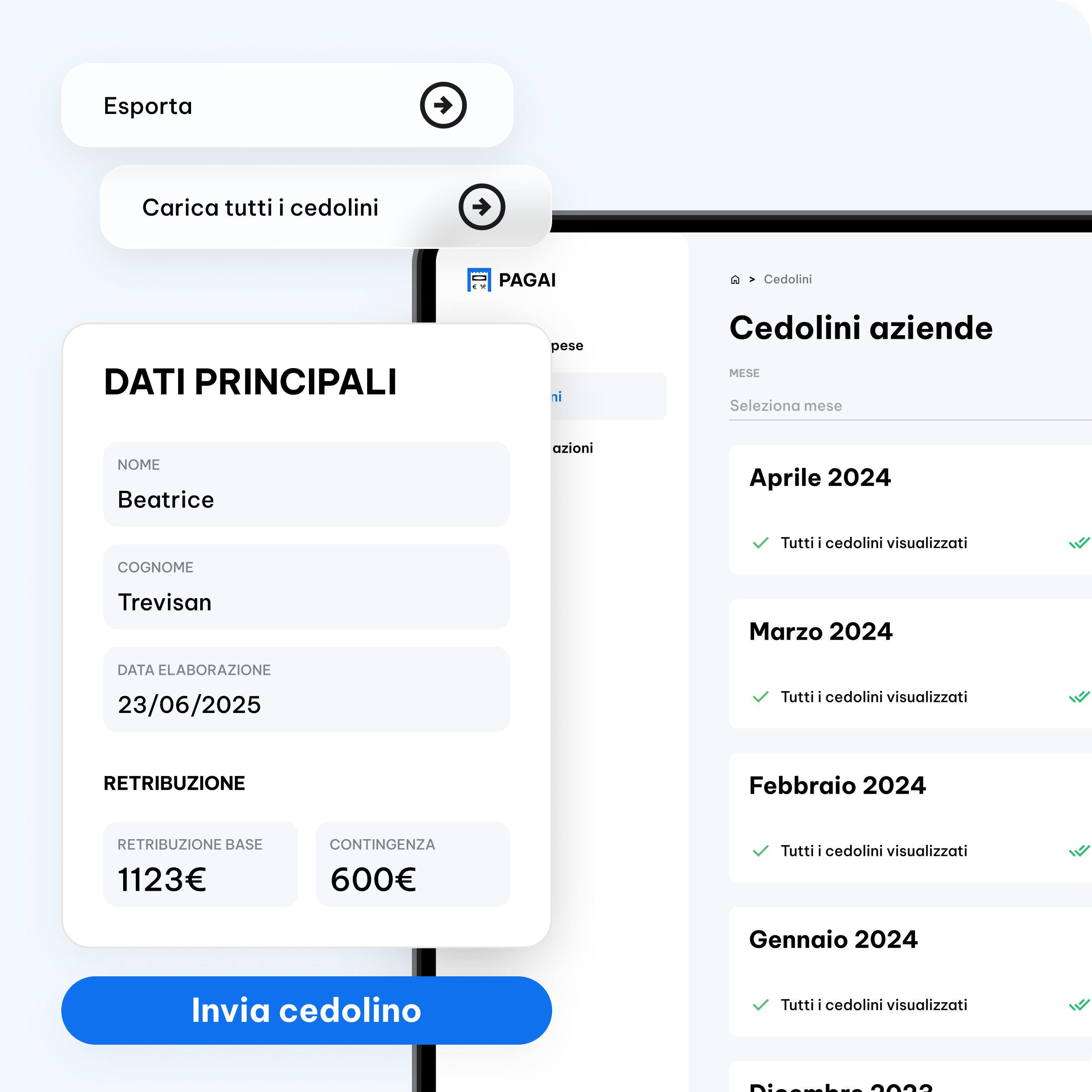 Cedolini, report, pagamenti e comunicazioni, tutto in un’unica efficiente piattaforma.